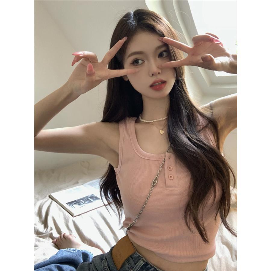 フロント部分のボタンがキュートでかわいいアクセント♪重ね着にも合わせやすく、インナーとしてもお勧めです◎