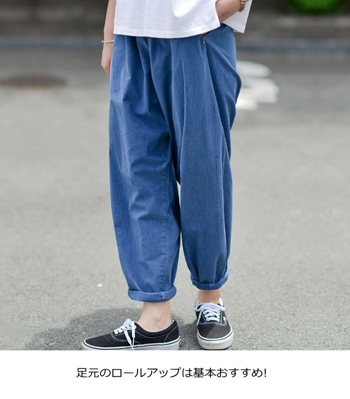 上下でセットアップとしてもご利用頂けますが、着崩した感じで腕やズボンの裾をロールアップしておしゃれに今風に着るのも良いです。