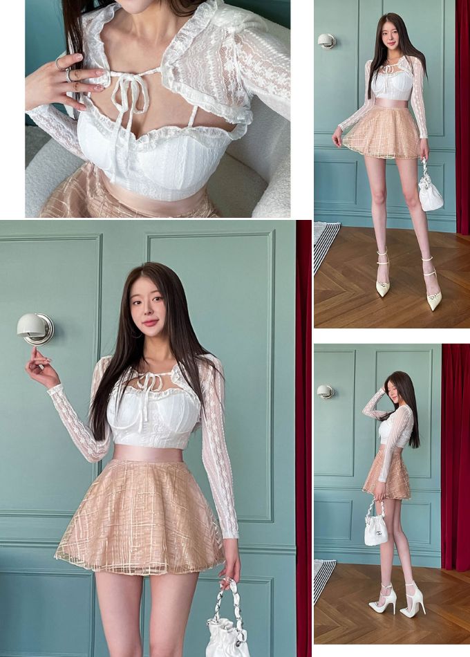 【セット商品】【全3色】カップキャミソール×レースリボンボレロセット アイボリー ピンク ブラック【string-y041907set】( mja )(240515)シナモンガール Cinnamon Girl 超ミニ マイクロミニ 韓国 胸元 セクシー cinnamongirl レディース ラブリーなリボンポイント 伸縮性◎で着心地good 5