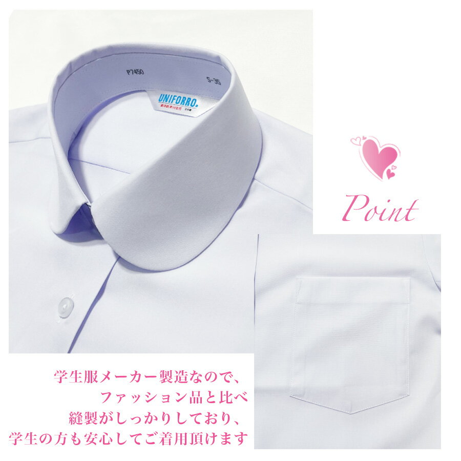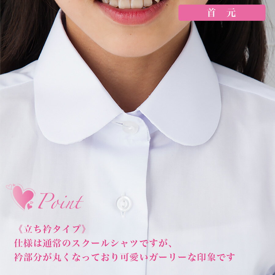 丸衿ブラウス(立ち襟) 商品説明 衿部分が丸みを帯びており、可愛くガーリーな印象のスクールシャツです。