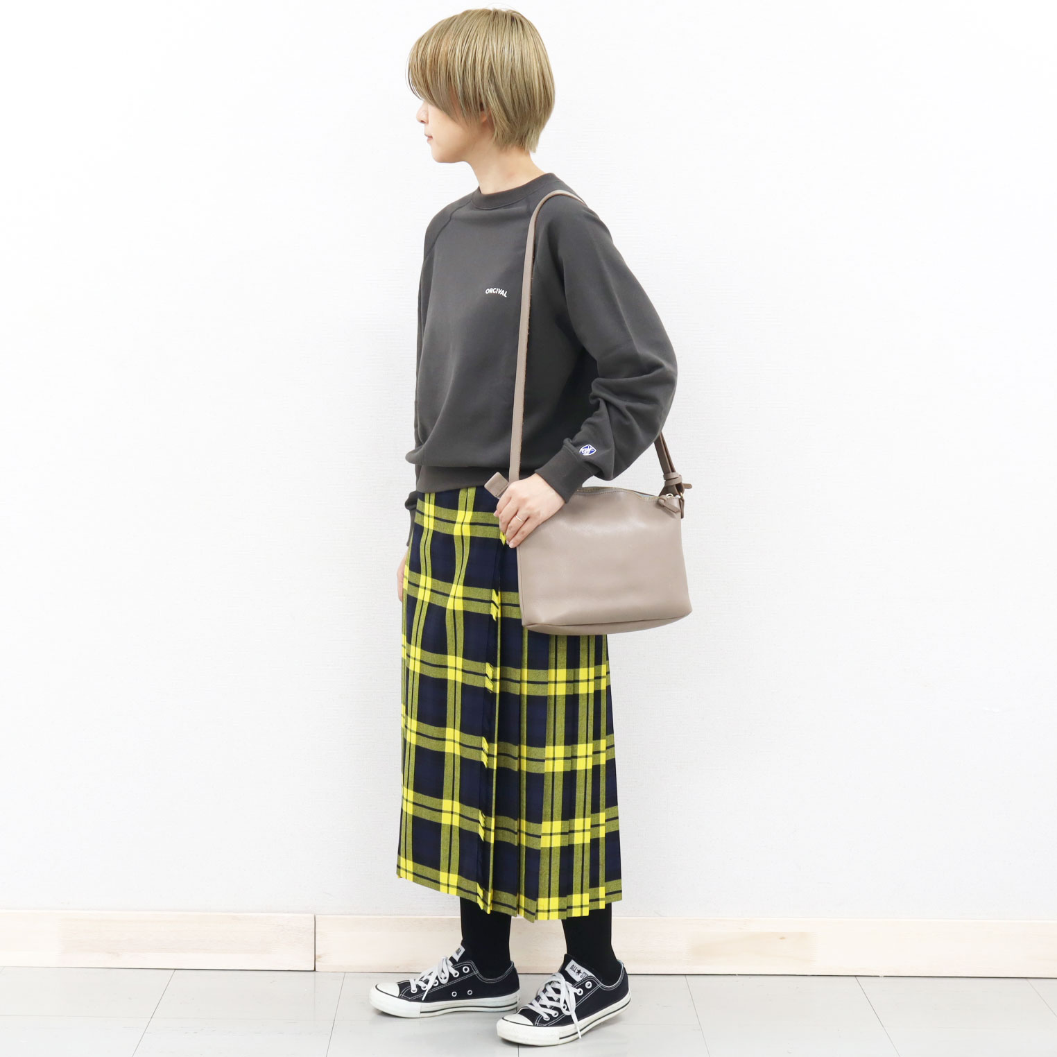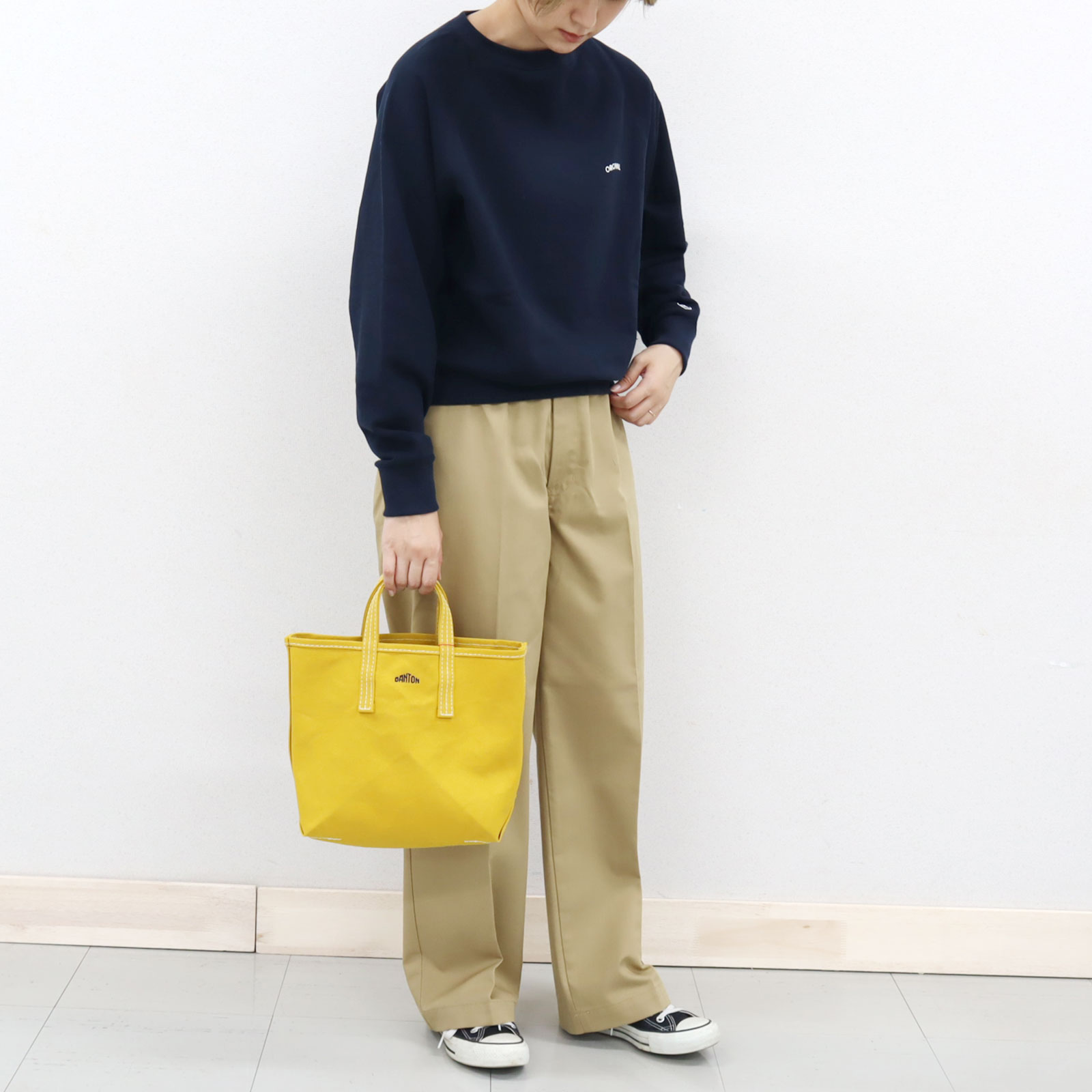 首回りがすっきり見えるボートネックで、カジュアルなスウェットを オーシバルらしくどこかきれいめな印象に。
