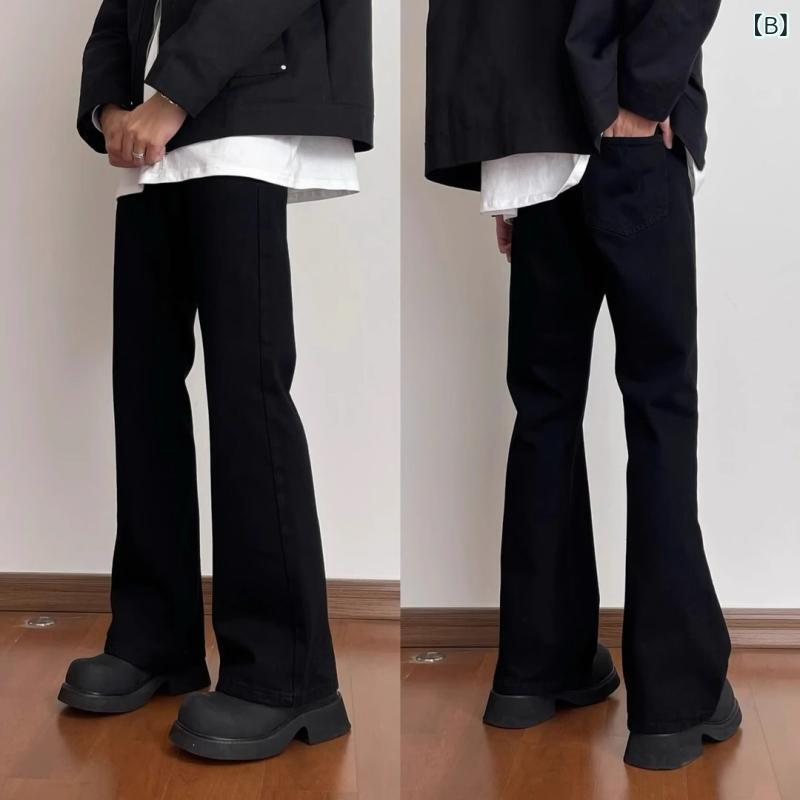 デニム メンズ ヴィンテージ風 ベルボトム ジーンズ パンツ 高腰 スキニー ストレッチ スリム レトロ ブルー ブラック