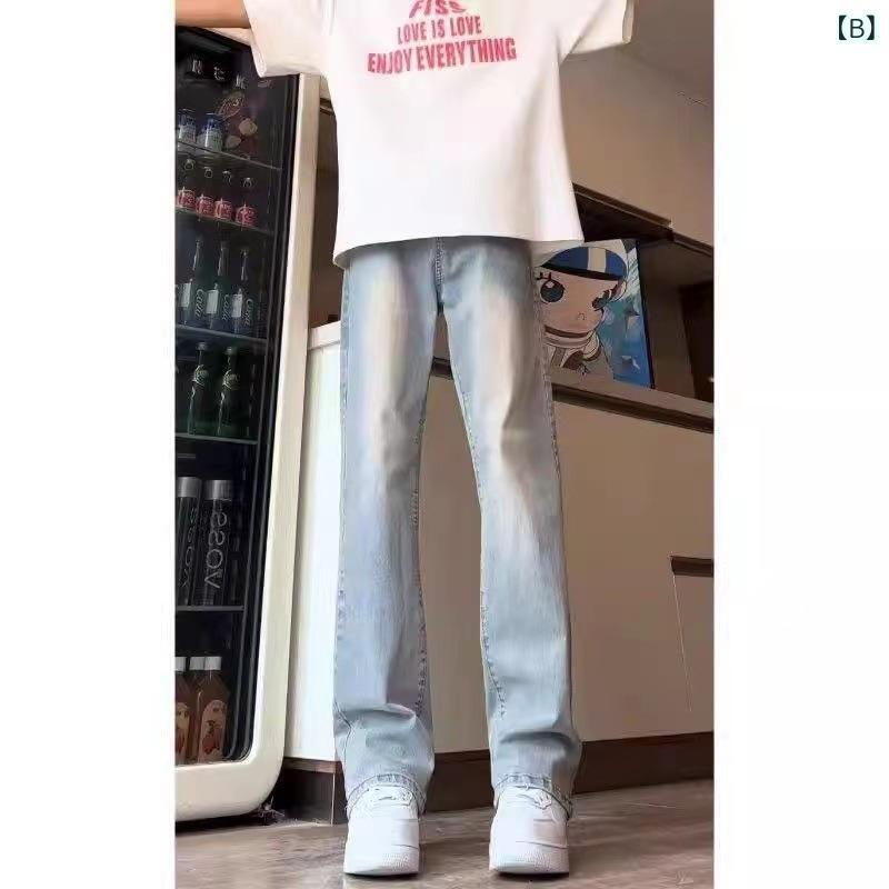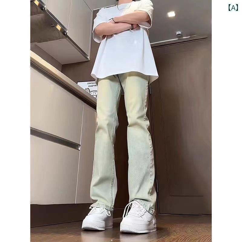 デニム メンズ ジーンズ ジーパン ストレート ヴィンテージ ウォッシュ加工 ユーズド加工 黄泥色 アメカジ 薄手 多ポケット S M L XL 2XL 3XL