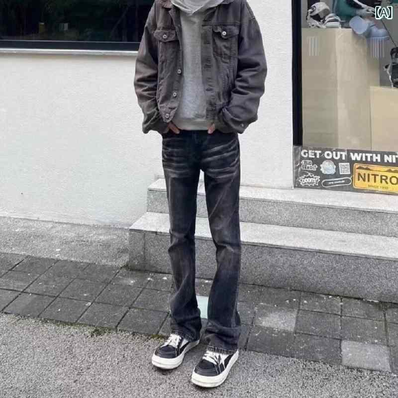 ジーンズ メンズ ヴィンテージ風 猫ヒゲ加工 ブラックグレー デニムパンツ スリムフィット ジーパン カジュアルパンツ 水洗い加工・スタイル: 流行・パンツのスタイル: ストレート・パンツの種類: ルーズ・加工: ウォッシュド・パンツ丈: フルレングス・股上: ミドルウエスト・フロント: ひも・厚さ: 厚手(裏起毛)・対象: ・生地: デニム・メイン素材: ポリエステル・素材の割合: 1%・利用シーン: デイリー・デザイン: 立体・伸縮性: なし・カラー: ブラック・サイズ: S.M.L.XL.2XL.3XL・対象年齢: 大人・対象性別: メンズ・製品カテゴリ: ジーンズ