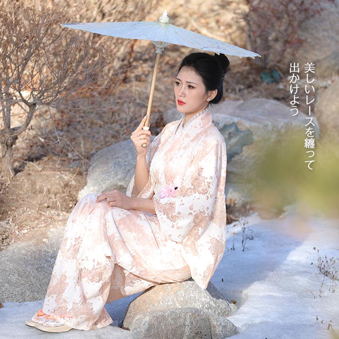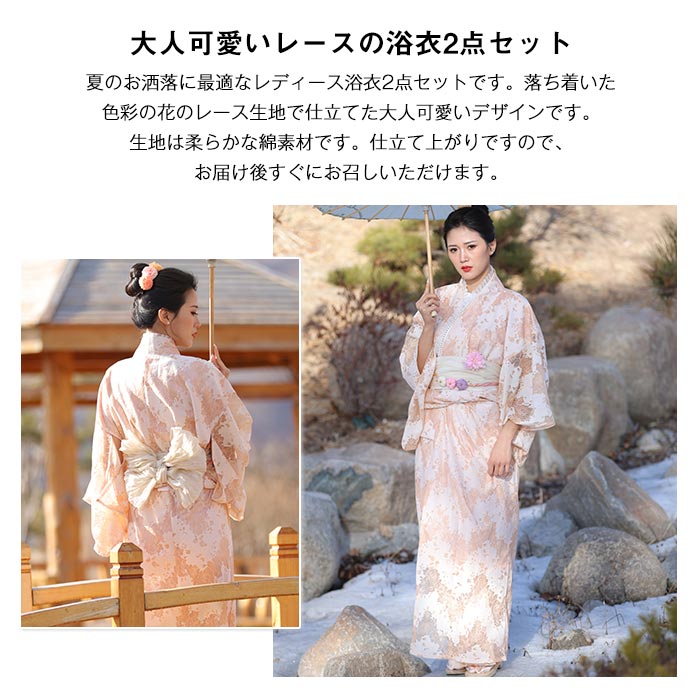 ※帯飾り・髪飾り・下駄などの小物は付属しておりません 商品説明 お洒落を楽しめる総レース浴衣セットです。
