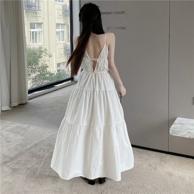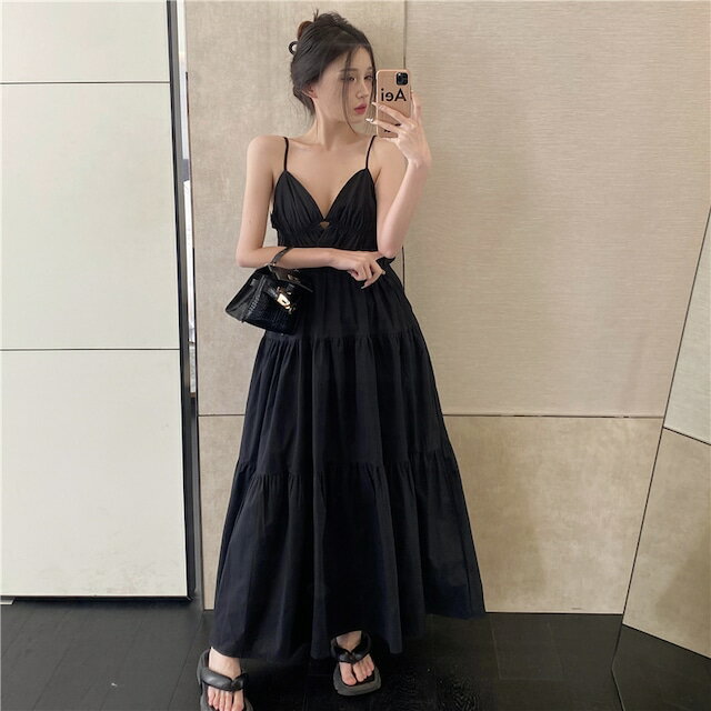 【送料無料】ティアードワンピース ノースリーブ コットン ティアードキャミワンピース ポケット付き ブラック ブラウン ホワイト 韓国服 バッグリボン ワンピース レディース オーバーサイズ リラックス 体型カバー