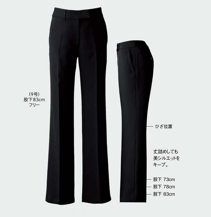 事務服 パンツ フレアストレートパンツ カーシー ノアール EAL516 オールシーズン オフィス レディース 制服 上品 受付 おもてなし ユニフォーム ストレッチ 静電 定番のブラックをより凛々しくエレガントに、理想的なスタイルを手に入れてワンランク上のプロフェッショナルへ。