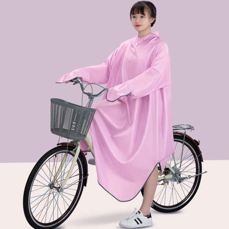 自転車でも濡れにくい!ふんわりポンチョ型のレインコートなのでリュックを背負ったままOK!透明のダブル雨よけサンバイザー付き、メイクしていても安心♪(取り外し可能)防風手袋付き♪高い防水性&撥水力!耐久性が高い、しっかりとハリ感のある生地です。