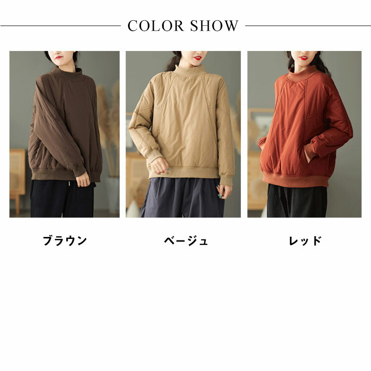 商品説明 商品内容ボトルネック レディース パーカー 大人 防寒 シンプル ハイネック ダウン風 中綿トレーナー ゆったり 長袖 中綿プルオーバー 厚手 トレーナー 秋冬 着回し 暖かい トップス 冬 プルオーバー キルティング 素材ポリエステル カラーレッド ブラウン ベージュ 生産国中国 サイズ