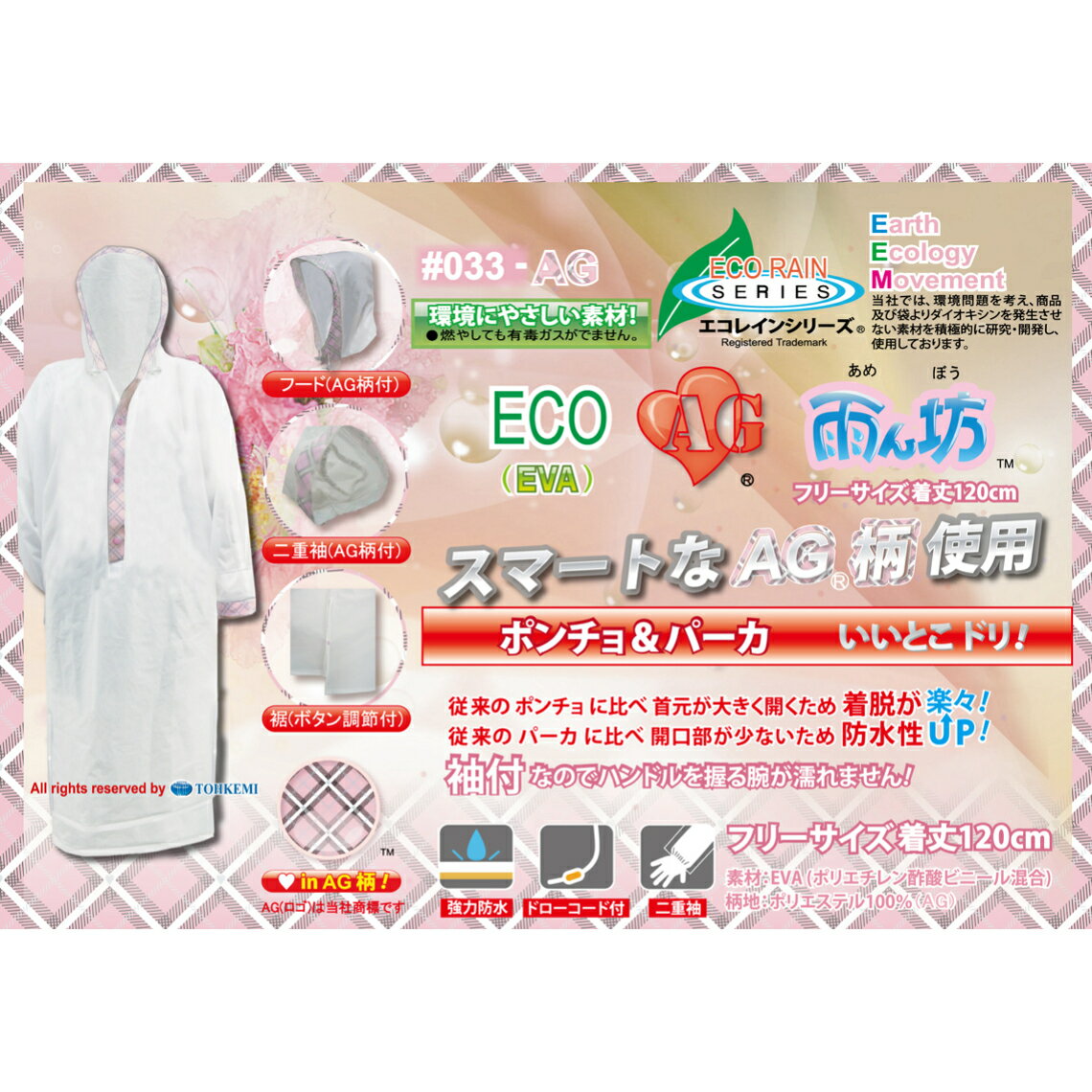 【即日発送】女性に人気のAGシリーズ! 二輪乗車に最適! トオケミ(TOHKEMI) レディース・ECO AG雨ん坊レインポンチョ(#033-AG AG (ホワイト)) 〈オリジナルキャリーポーチ付〉