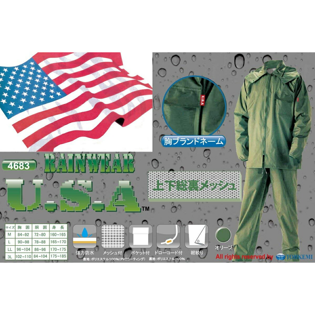 カラーオリーブサイズ(S/M/L)Mサイズ 身長165-175、チェスト88-96、ウエスト76-84 Lサイズ 身長170-180、チェスト96-104、ウエスト84-92 LLサイズ 身長175-185、チェスト104-112、ウエスト92-100 3Lサイズ 身長180-190、チェスト112-120、ウエスト100-108素材(生地)表地:ポリエステル100%(PVCコーティング) 裏地:ポリエステル100%特徴上下裏メッシュ付 着脱式フード パンツ裾絞り機能付きFM COLOR シリーズFM COLOR________ トオケミ創業時より継続しているオーセンティックブランド。