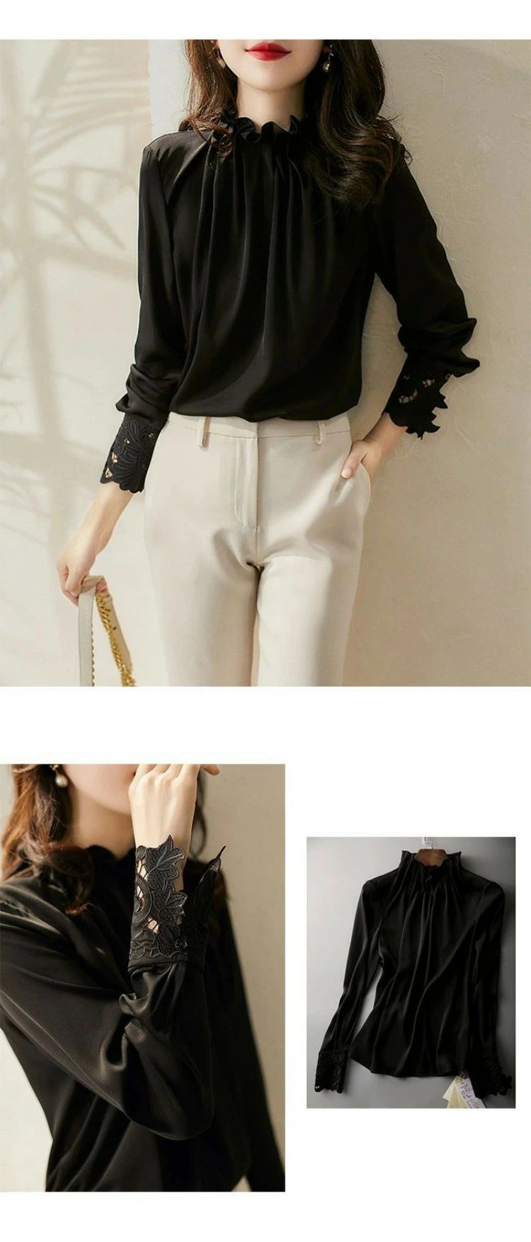 ふわっととろみ感のある高級感のある生地感は、ゆるっとしたフォルムで、袖口にはしっかりギャザーできれいなだけじゃない使いやすさも魅力。