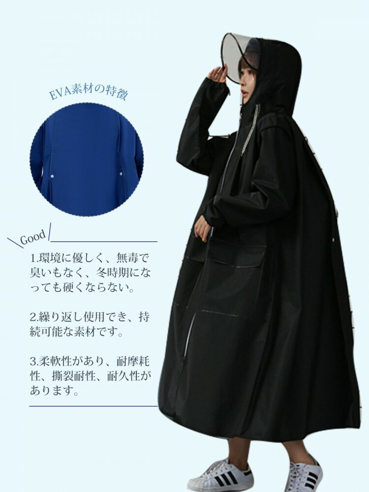 【男女兼用大きめサイズ】街歩きはもちろん、自転車、バイク、原付き運転にも対応可能なレインコートです。