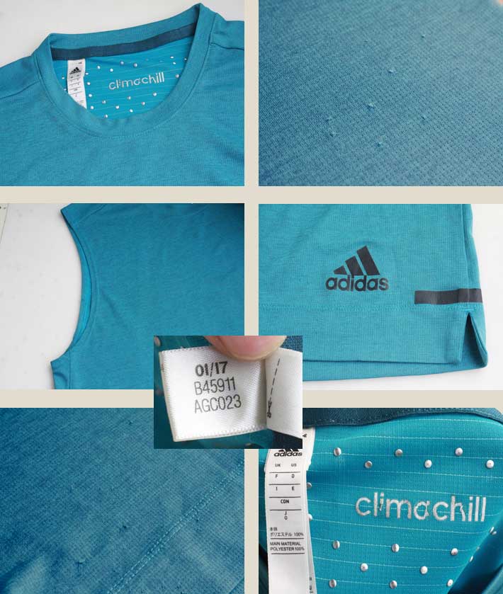 Usedアディダス adidasclimachill ノースリーブ Tシャツ ワークアウト中もさらりと涼しく快適な着心地が持続します!! 1. 色は青系です。