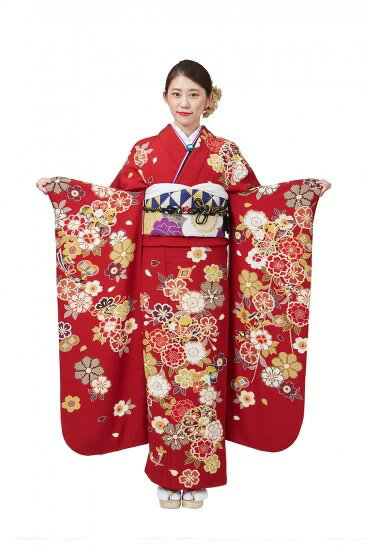 【商品サイズM】 対応身長:160cm〜170cm 対応ヒップ:90cm〜100cm 状態:S(新品) ・身丈 166cm ・裄丈 68cm ・袖丈 113cm ・前幅 25cm ・後幅 30cm三越縮緬風の無地感の生地に、大輪の花などを格調高く染め上げた振袖です。