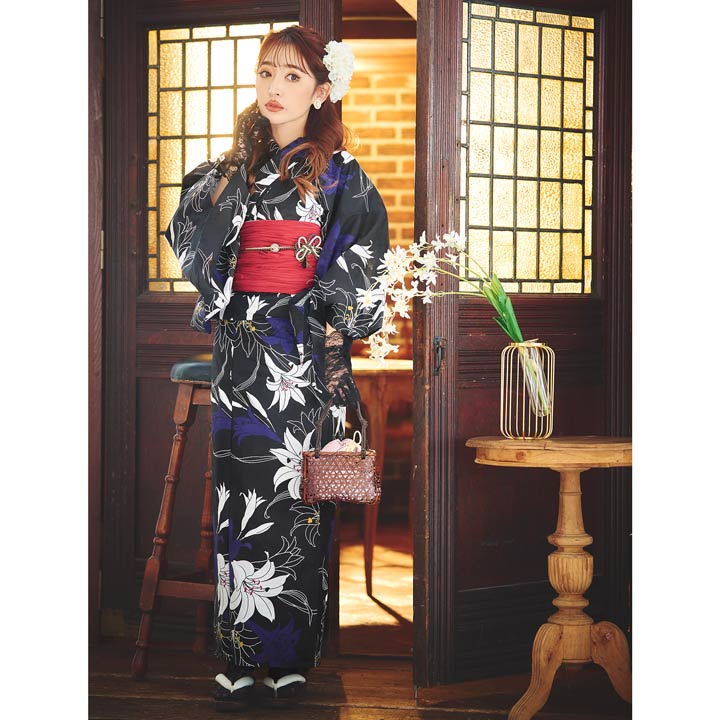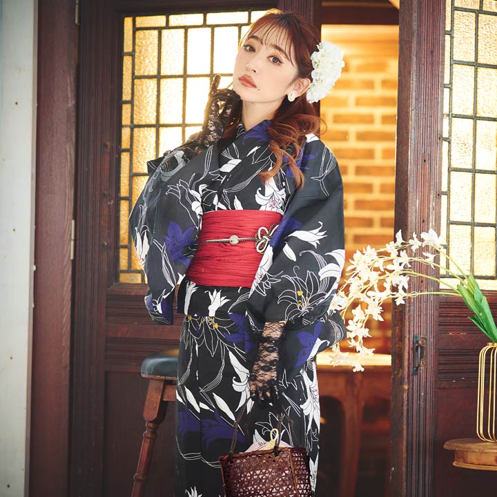 【商品説明】大人っぽい黒地に白と青の百合が描かれた華やかな浴衣セット。帯の赤色で色どりを加えた気品漂う一着です◎新作再入荷ランキング コンテンツランジェリーブラ&ショーツ