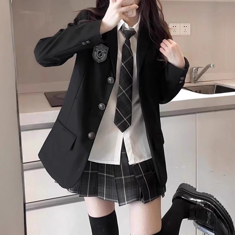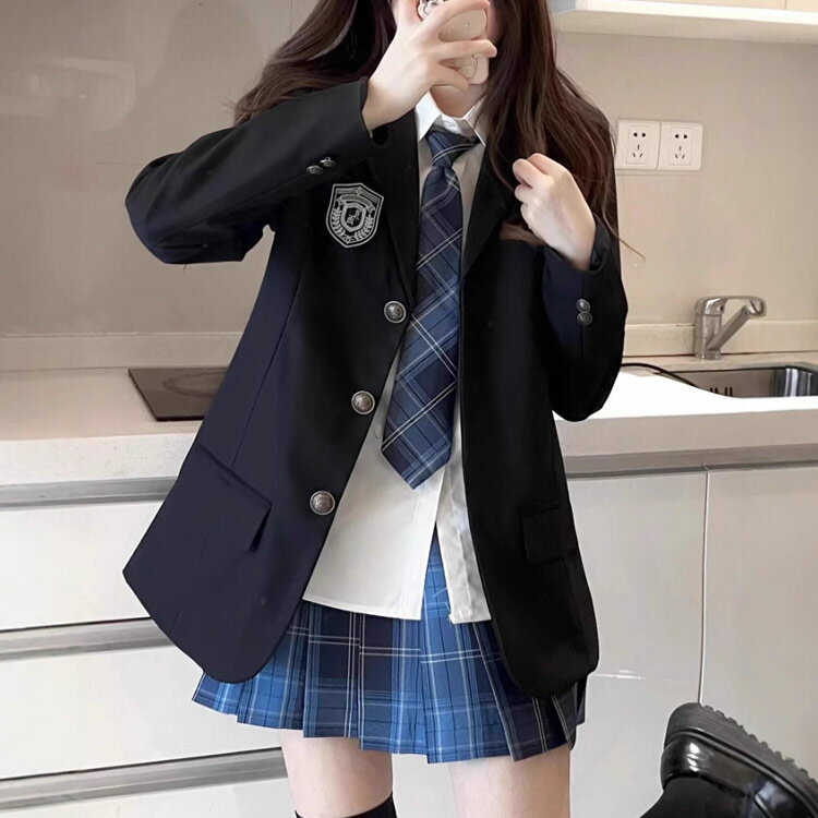 【本格的なスクールデザイン】落ち着いた色合いと付きブレザーで、リアルな制服スタイルを再現。