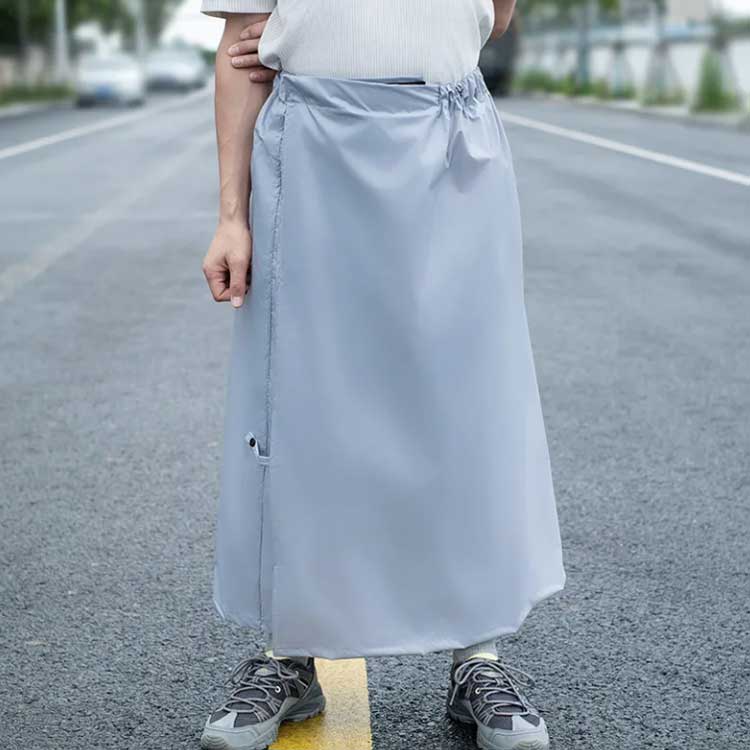 雨の日の通勤・通学時に活躍!ウエストゴムで着脱しやすいレイン巻きスカート撥水、防水加工を施したレインボトムスカバーです。