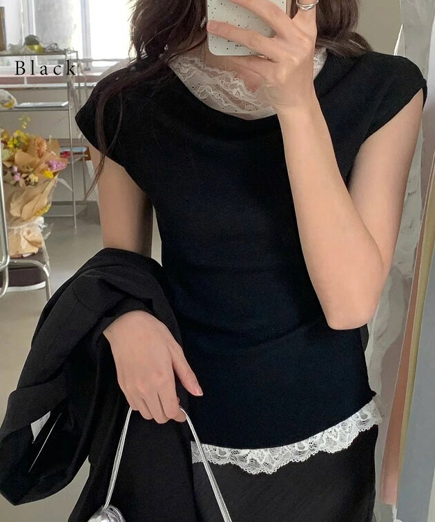 ■商品説明 フェミニンなレースインナーをドッキングしたニットソー。