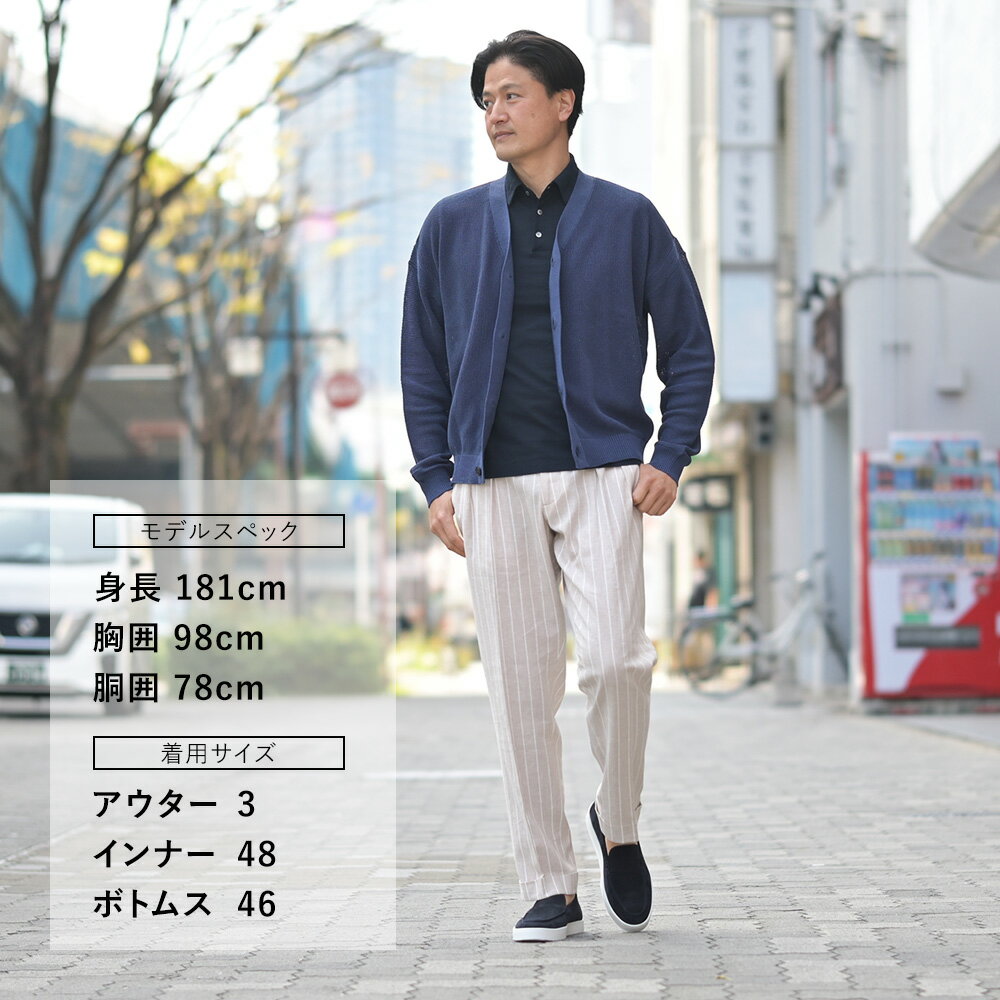 モスステッチと名付けられた独特な編み地による表情が特徴的であり、通気性とリラックスさを備えたカーディガンになります。