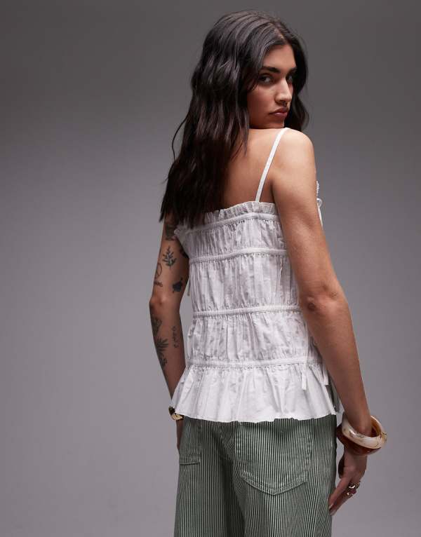 商品説明 Topshop poplin pleat tiered cami in ivory