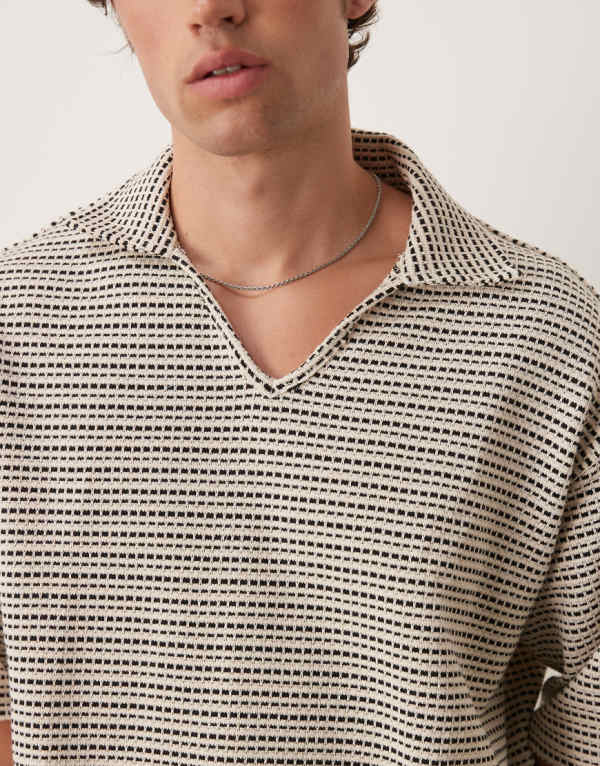 商品説明 ASOS DESIGN crochet oversized striped polo shirt co-ord in black and white