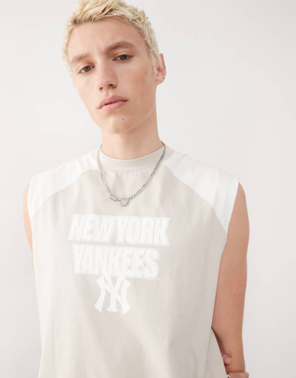 商品説明 New Era NY Yankees motif raglan vest co-ord in cream