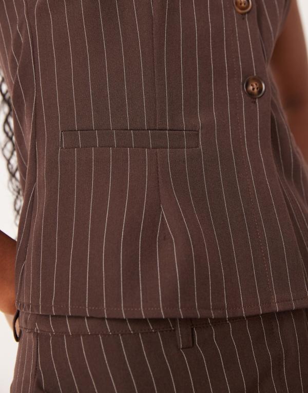 商品説明 Motel Ganita scoop neck co-ord button up pinstripe vest in brown