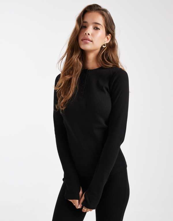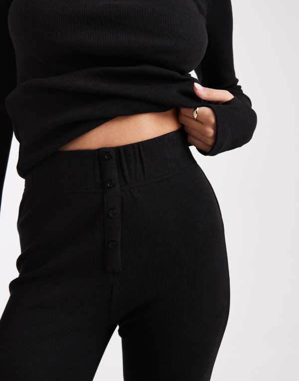 商品説明 Threadbare ribbed button down long sleeve loungewear set in black