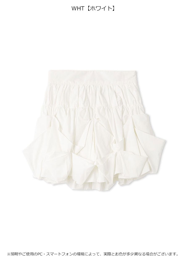 【まるで花のようにふんわりとドレッシーに仕上げたペタルバルーンスカショーパン】 程よいハリ感と艶感のあるポリエステル生地を使用し、立体的なシルエットに仕上げたロマンティックなペタルバルーンスカショーパンが届きました。