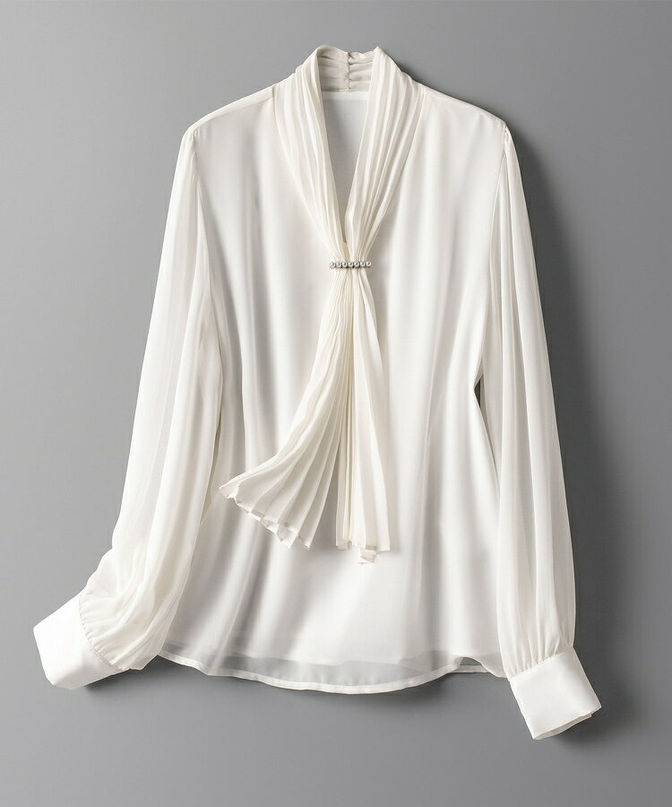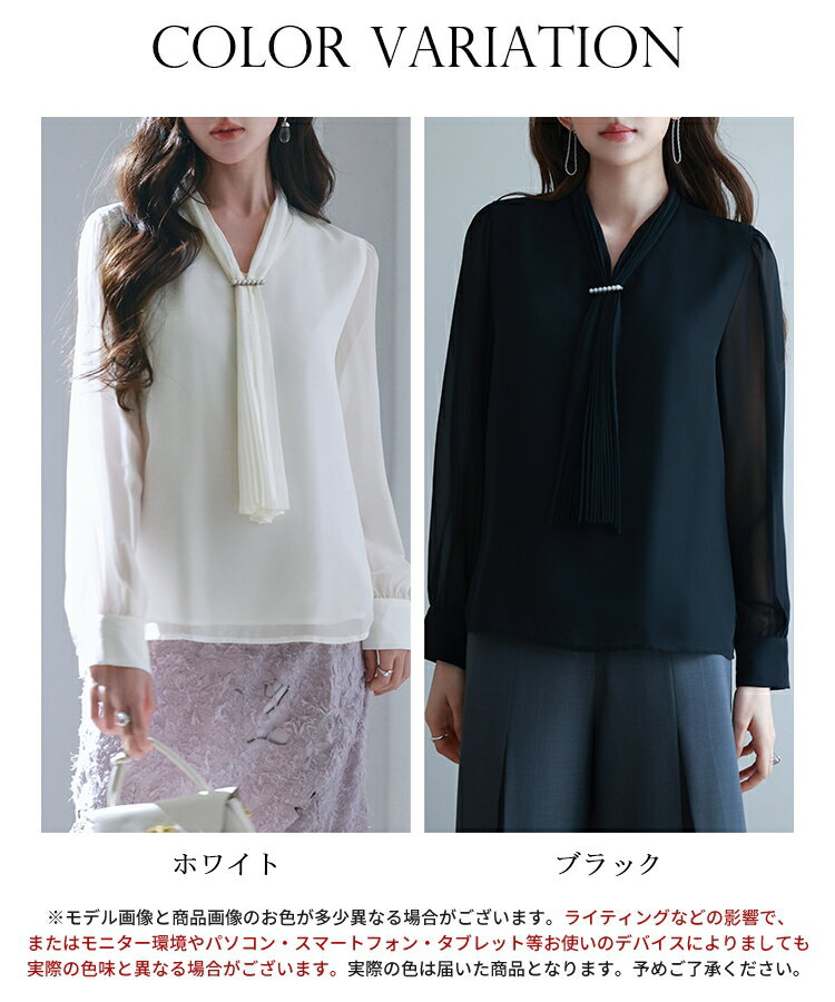 オフィスやセレモニーシーンに合うきれいめボウタイシフォンブラウス。