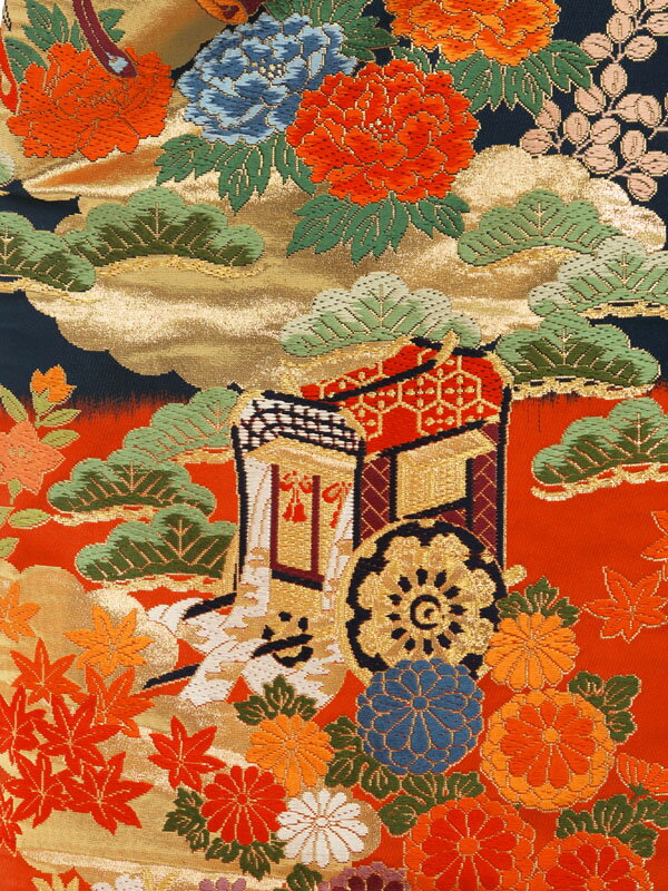 ■色/柄 朱と青のぼかし鳳凰御所車織り込み