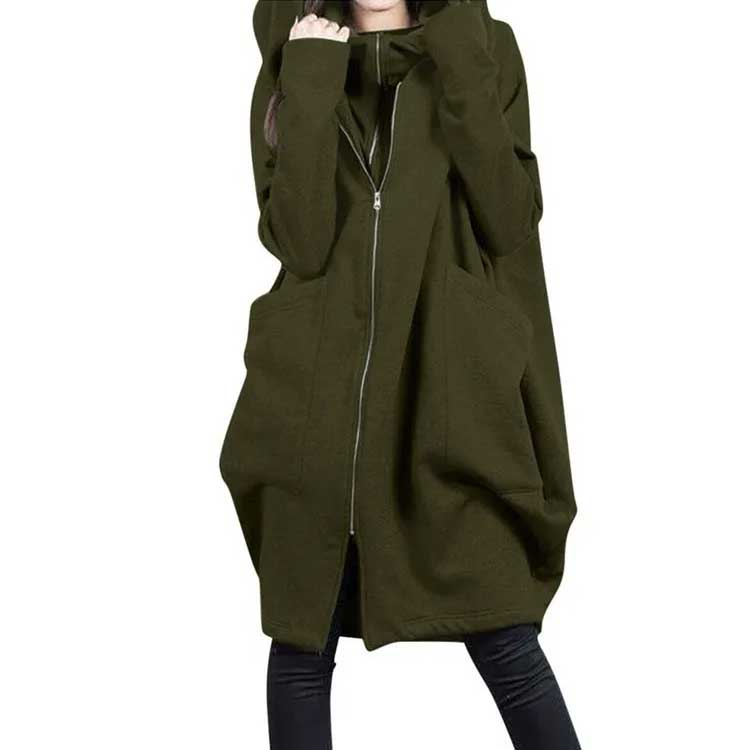 ボリュームネックデザイン!カジュアルスタイルロングパーカー。