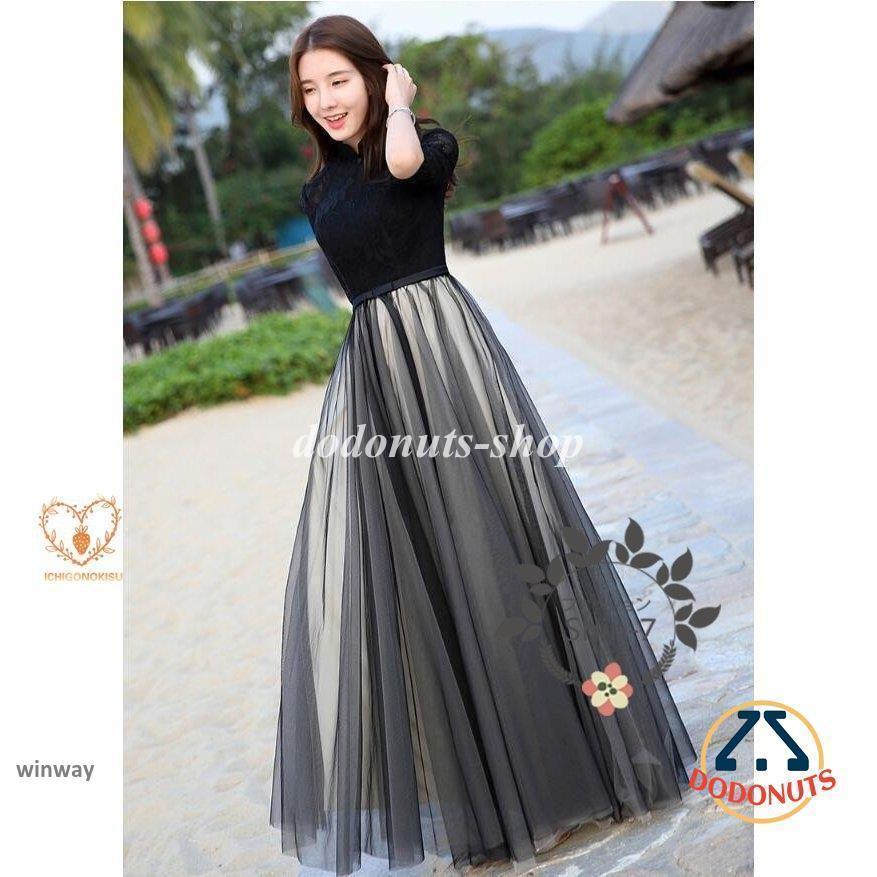 商品情報レースのトップスと透け感のあるスカートの切り替えロングワンピース!な透け感でしっとりとした艶っぽさを演出。