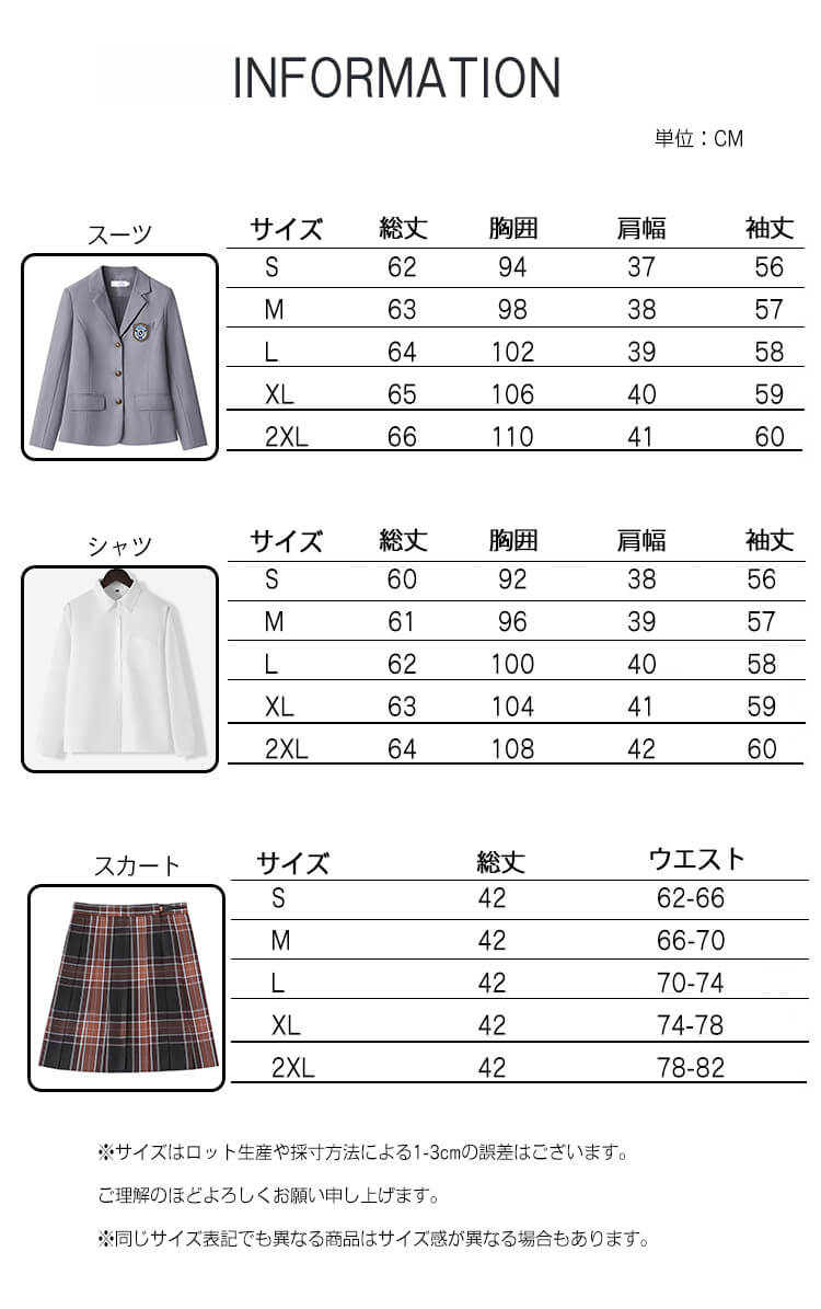 商品情報 商品名 制服 5点セット 卒業式 スーツ 女の子 女子高生 学生服 入学式スーツ ジャケット ブラウス 長袖 チェックスカート スカート ワッペン ネクタイ ボウタイ フォーマルスーツ 子供スーツ コスプレ制服 小学生 中学生 高校生 jk制服 七五三 成人式 学園祭 発表会 お受験 結婚式 素材 ポリエステル100% カラー セットA|セットB|セットC|セットD|セットE|セットF|セットG|セットH|セットI|セットJサイズ 各サイズの寸法については画像のサイズ表にご参照ください。