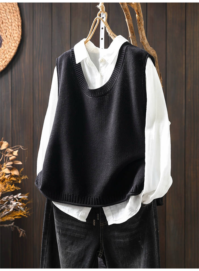 素材 綿+ポリエステル 生産国 中国 キーワード ニット ベスト レディース バック姿も可愛い クールネック サマー ベスト 秋 冬 春 ニットベスト おしゃれ 着回し トップス 体型カバー ゆったり 大きいサイズ シンプル カジュアル レイヤード 重ね着 定番 大人 可愛い 20代 30代 40代 50代 黒 ブラック グレー 送料無料