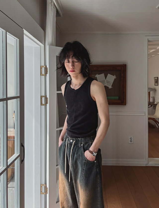 【2plan】Prow Unbalanced Cutting Sleeveless (R8288A505YCO) Prow Unbalanced Cutting Nasi プロウアンバランスカットノースリーブ プロウアンバルカッティングナシ ▼サイズ詳細 (cm) -ONE SIZE (着丈65 肩幅31 胸囲80 袖丈-) ▼カラー -White -Burgundy -Charcoal -Black ▼マテリアル -Poly 88% -Rayon 7% -Span 5% ▼モデル詳細 -MEN 176cm / 60kg / トップ 95~100 / ウエストS