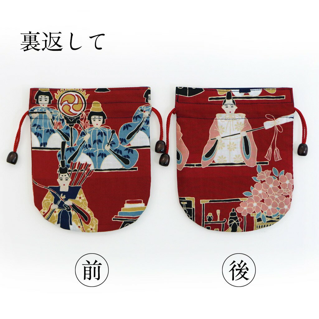 サイズ:約18cm×15cm マチなし(平置きで計測) 素材 本体:綿100% 紐:レーヨン ~リバーシブル手ぬぐい巾着~ 両面に手ぬぐいを使用しており、リバーシブルでお使いいただけます。