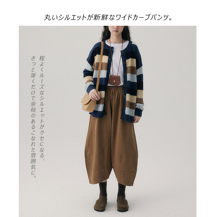 丸いシルエットが新鮮なワイドカーブパンツ。