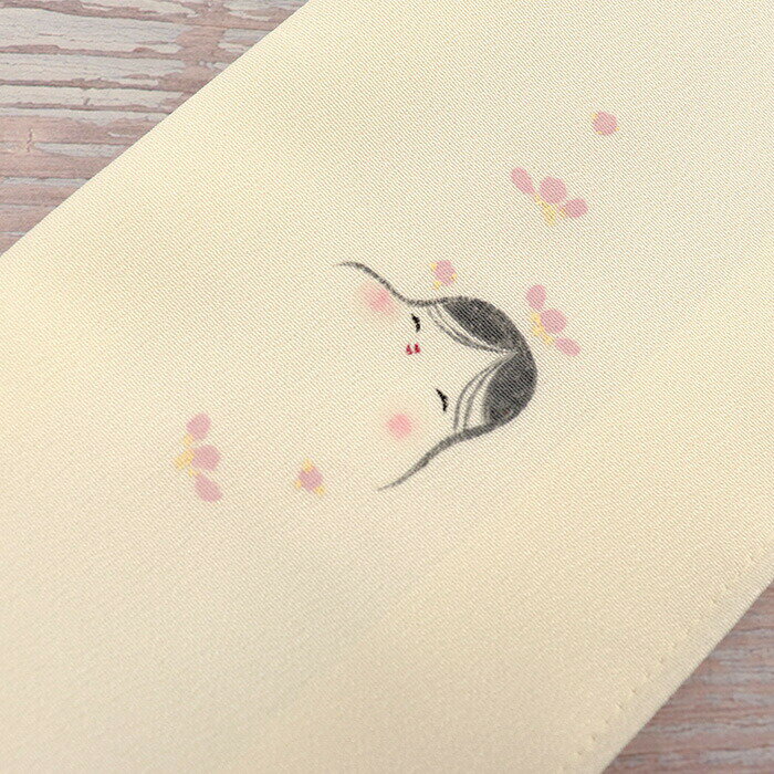 薄黄色地の半衿にかわいいお多福が手描きで描かれております。
