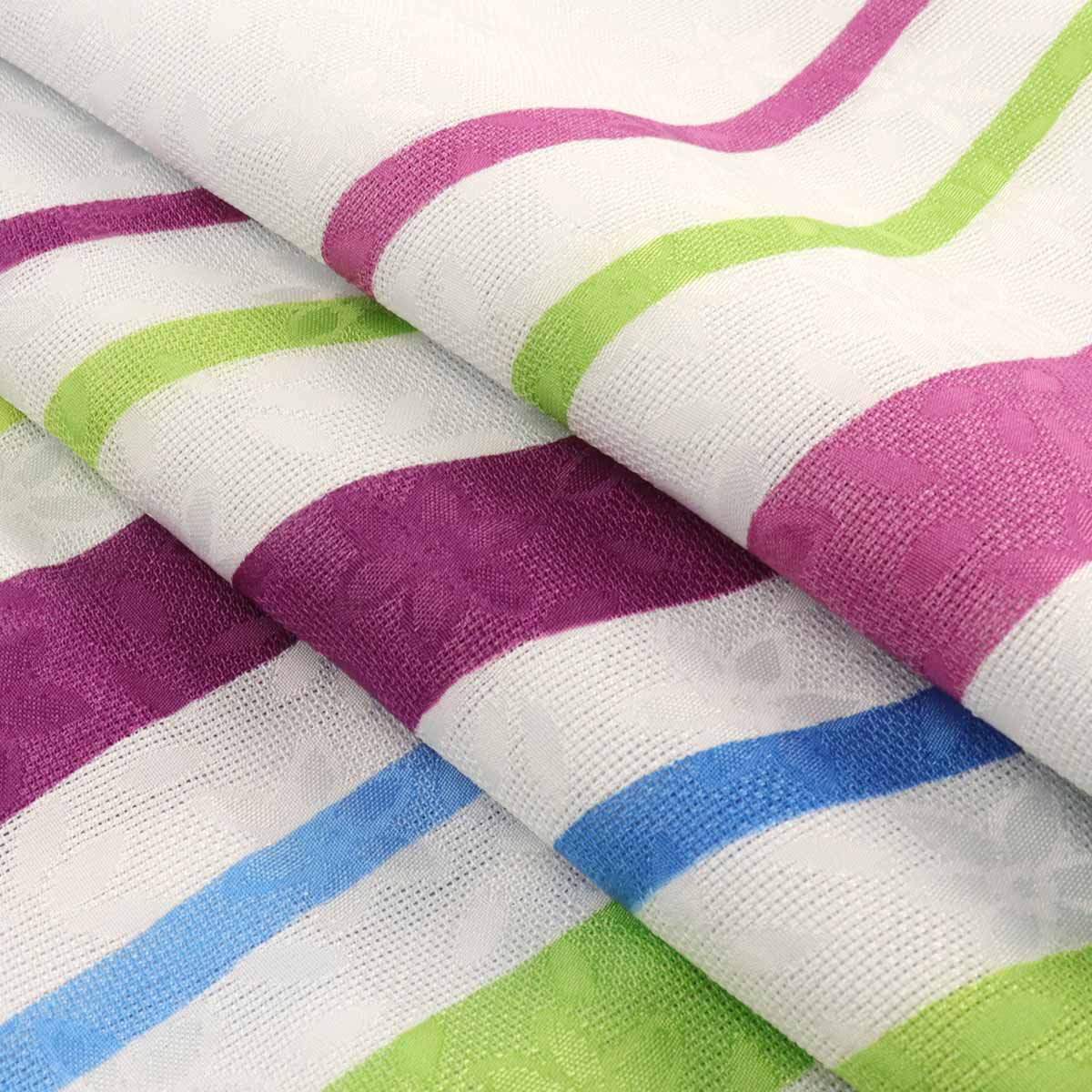 夏用の生地に涼やかな色合いのよろけ縞を友禅で表現しました。