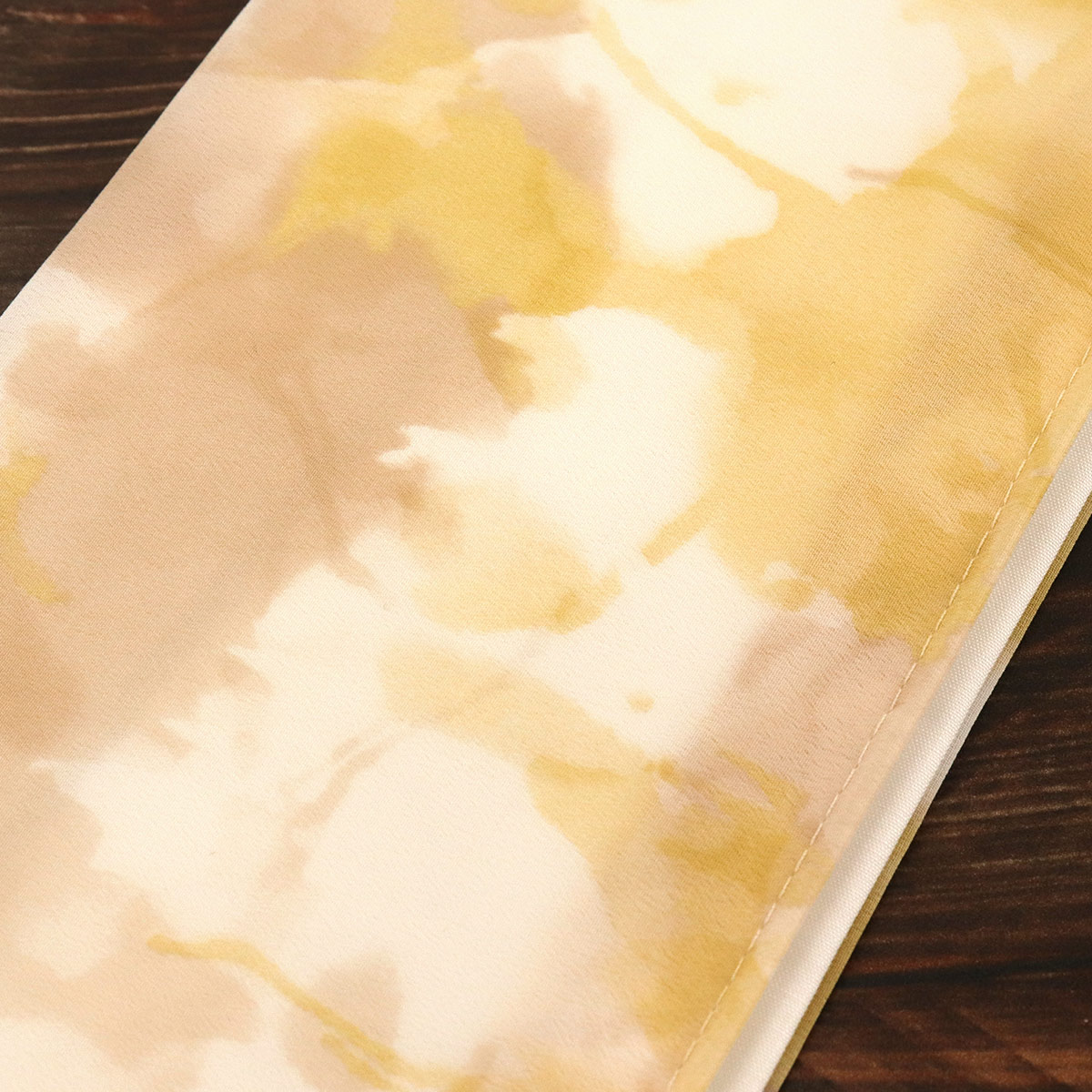 オレンジイエロー系の優しい水彩柄がオシャレな生地。