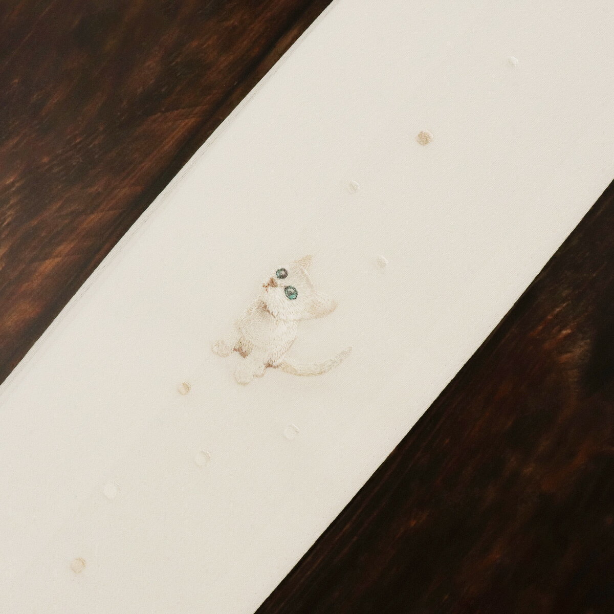 白の半衿に、リアルな子猫を刺繍で表現しました。