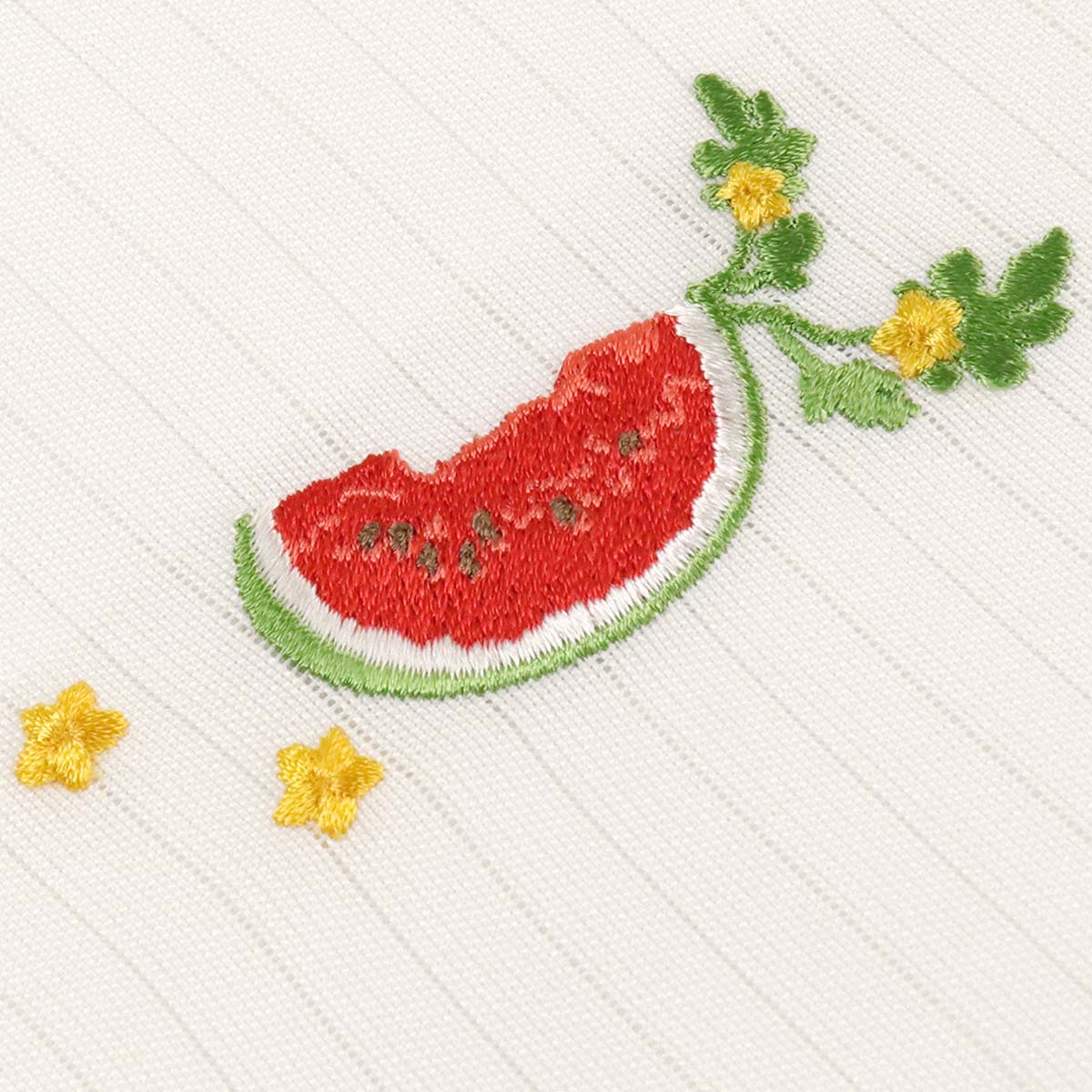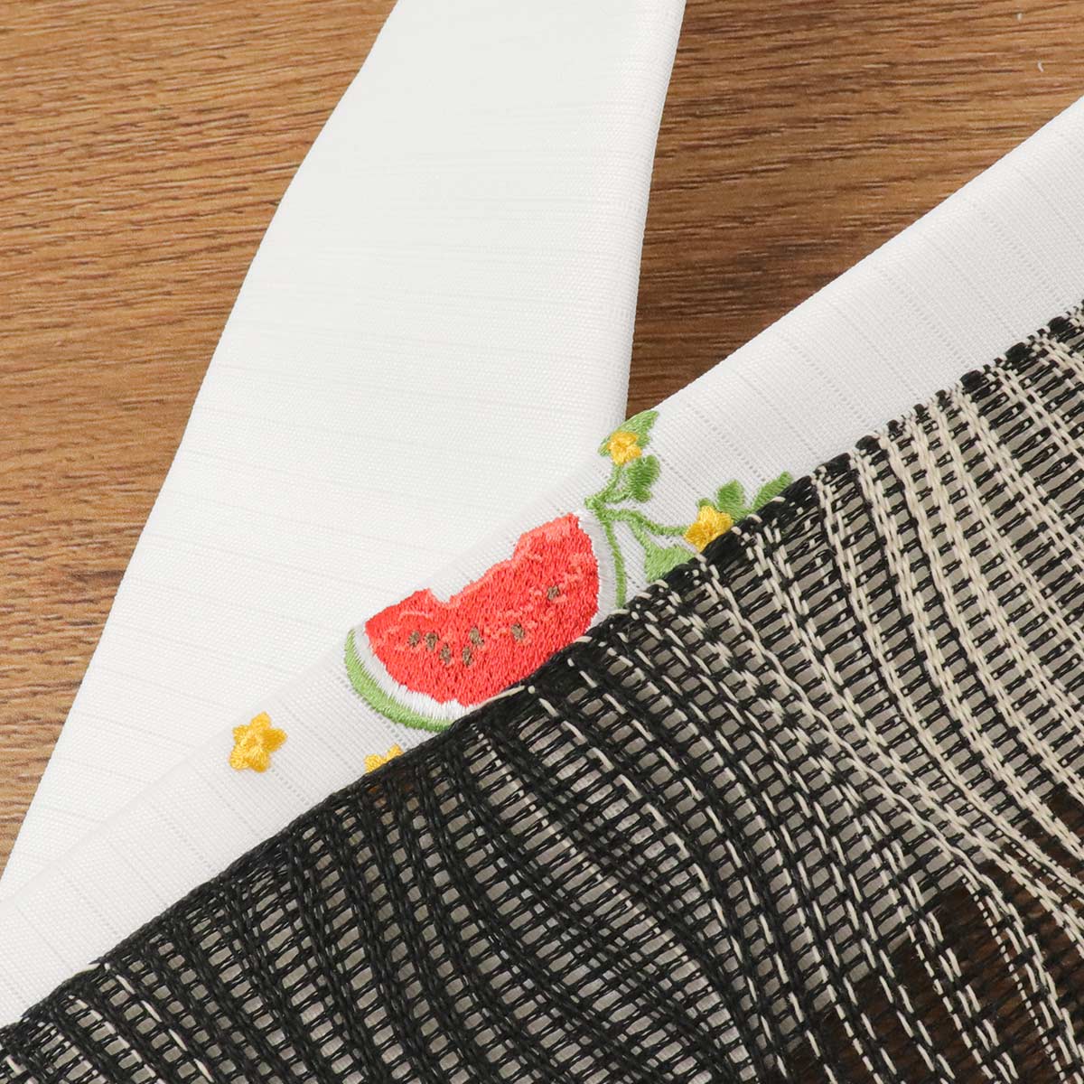 白の絽生地にスイカを刺繍しました♪ 衿元のお洒落をお楽しみください! ファスナー式の替え衿とは? お襦袢の衿元と半衿部分がファスナーで取り外しできる画期的な襦袢です。