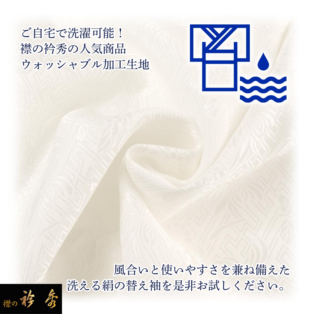 この替え袖、絹ですがご自宅で洗える加工がしております! 絹はメンテナンスが大変で敬遠される方もいらっしゃいますが、この替え袖なら安心です!