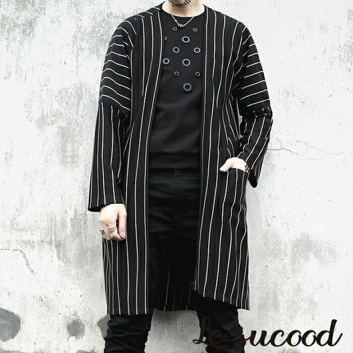 【商品説明】 ストライプ柄と無地の2色展開のロングジャケットです。
