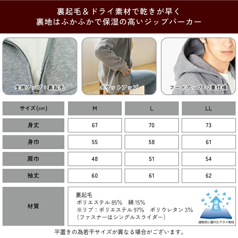※リブ:ポリエステル97% ポリウレタン3% ファスナーはシングルスライダー