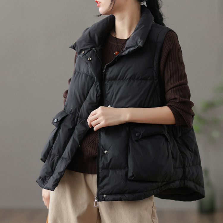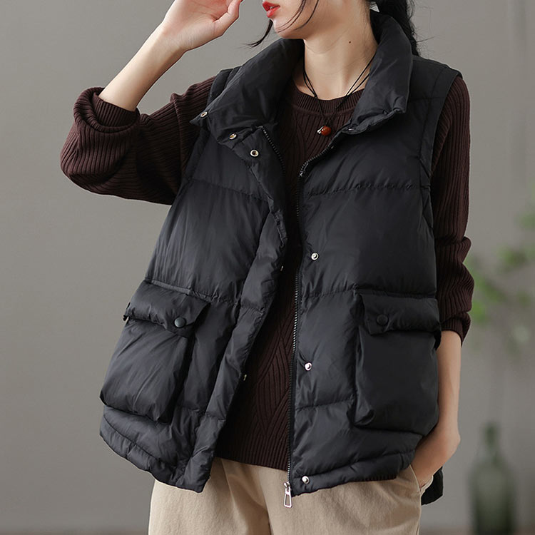 軽い着心地と微光沢のある素材感が、大人の女性にぴったりなフードダウンベスト。