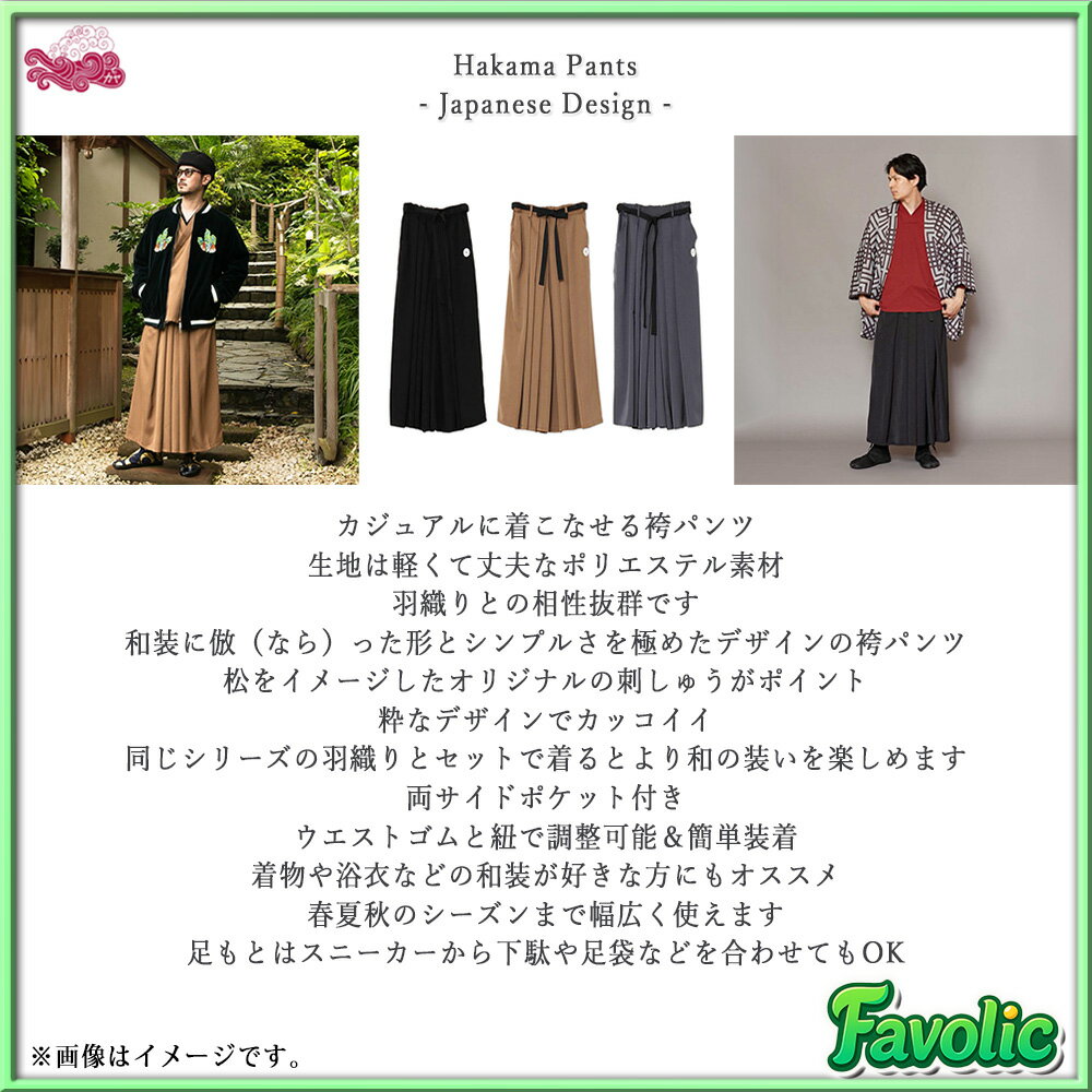 商品情報商品説明Hakama Pants- Japanese Design -カジュアルに着こなせる袴パンツ生地は軽くて丈夫なポリエステル素材羽織りとの相性抜群です和装に倣(なら)った形とシンプルさを極めたデザインの袴パンツ松をイメージしたオリジナルの刺しゅうがポイント粋なデザインでカッコイイ同じシリーズの羽織りとセットで着るとより和の装いを楽しめます両サイドポケット付きウエストゴムと紐で調整可能&簡単装着着物や浴衣などの和装が好きな方にもオススメ春夏秋のシーズンまで幅広く使えます足もとはスニーカーから下駄や足袋などを合わせてもOK祭 着物 和装 甚平 法被 明治 大正 昭和 浴衣 花見 夏祭り 秋祭り 京都 浅草素材ポリエステル100%