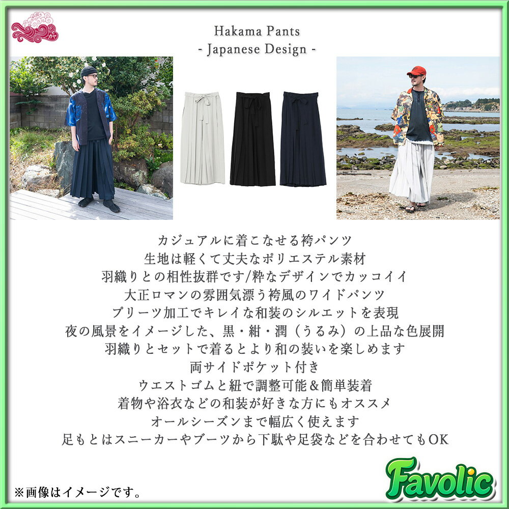 商品情報商品説明Hakama Pants- Japanese Design -カジュアルに着こなせる袴パンツ生地は軽くて丈夫なポリエステル素材羽織りとの相性抜群です粋なデザインでカッコイイ大正ロマンの雰囲気漂う袴風のワイドパンツプリーツ加工でキレイな和装のシルエットを表現夜の風景をイメージした、黒・紺・潤(うるみ)の上品な色展開和装を格上げしてくれる一枚です羽織りとセットで着るとより和の装いを楽しめます両サイドポケット付きウエストゴムと紐で調整可能&簡単装着着物や浴衣などの和装が好きな方にもオススメオールシーズンまで幅広く使えます足もとはスニーカーやブーツから下駄や足袋などを合わせてもOK祭 着物 和装 甚平 法被 明治 大正 昭和 浴衣 花見 夏祭り 秋祭り 京都 浅草素材ポリエステル 75% レーヨン 20% ポリウレタン 5%